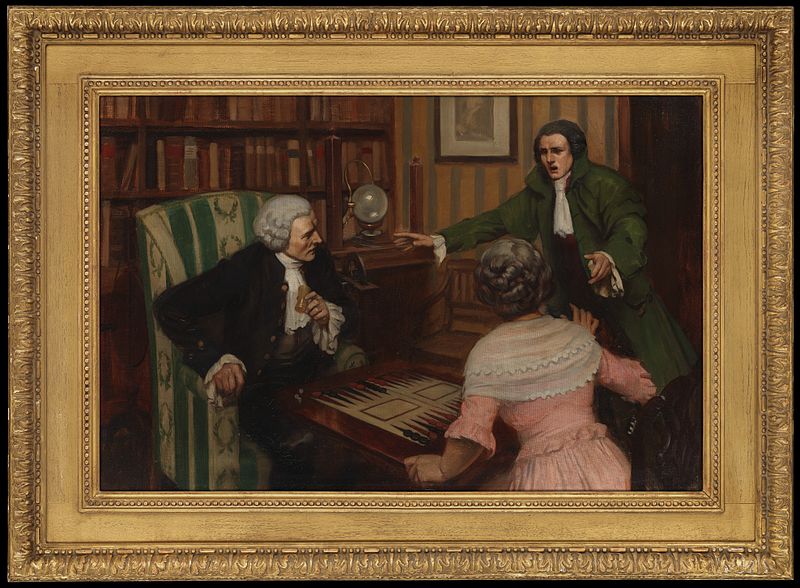 Image: Joseph Priestley playing backgammon as he receives the news that his house is about to be attacked by a mob, in 1791